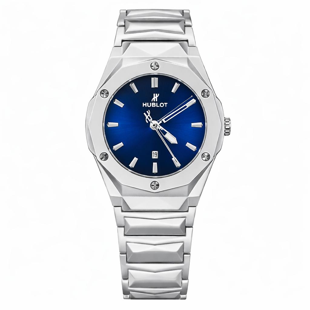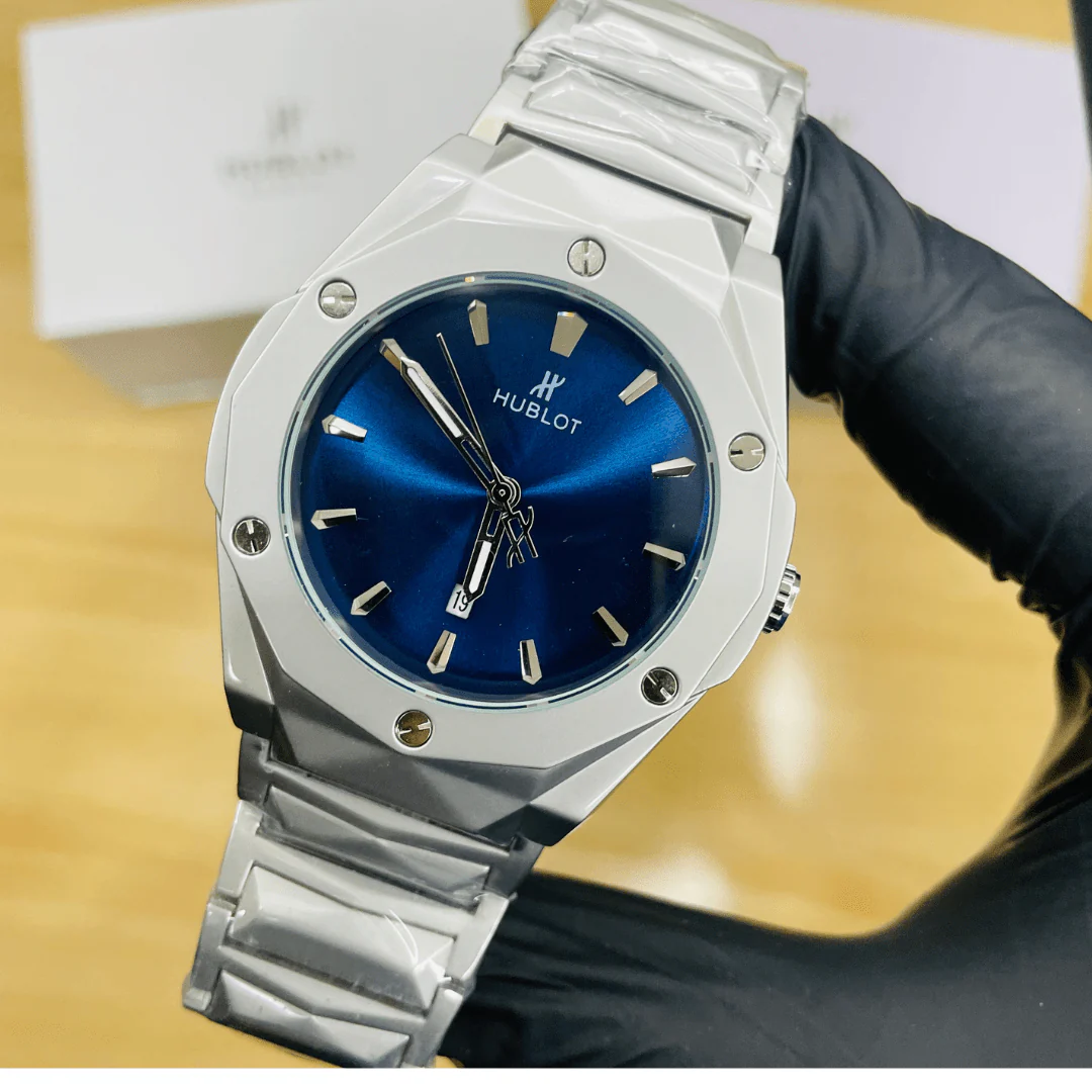 Hublot Premium Watch – Luxury Diamond Cut Chain – Navy Blue Dial