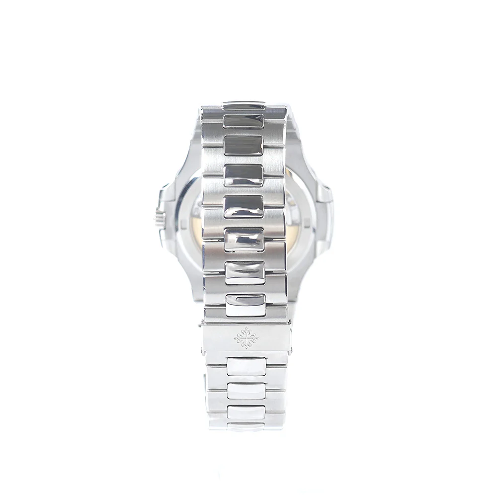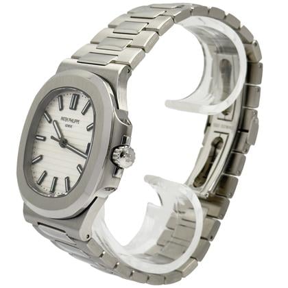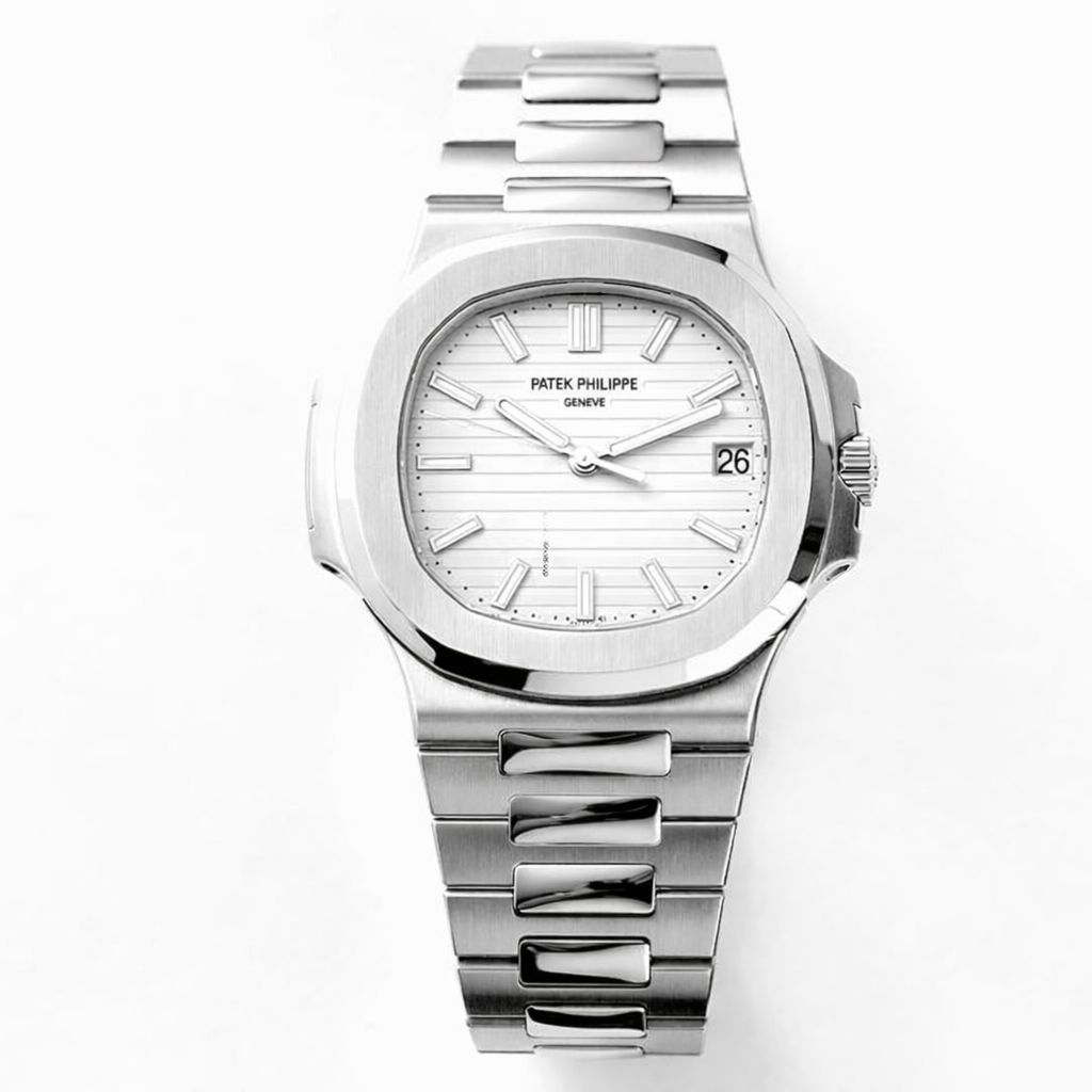 A splendid and rare Patek Philippe Nautilus 5711/1A-011 stainless steel wristwatch with white dial NOS Full set Salon Geneva papers